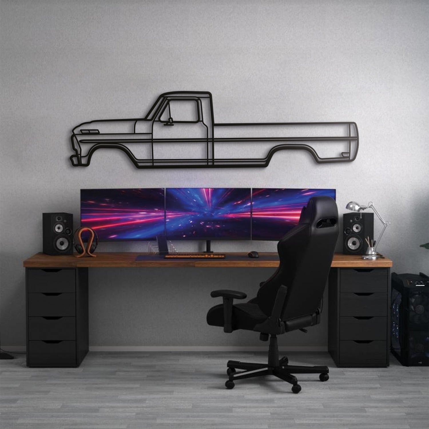 This 1968 F-100 Metal Silhouette Wall Art will turn any car enthusiast's home, garage, hallway, living room, bedroom, or office into a unique space, add a stylistic look and captivate petrolheads as well as visitors.