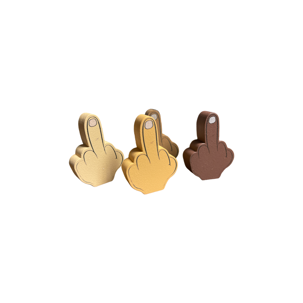 A box of 4 wooden middle fingers perfect to give to your friends (or enemies)!