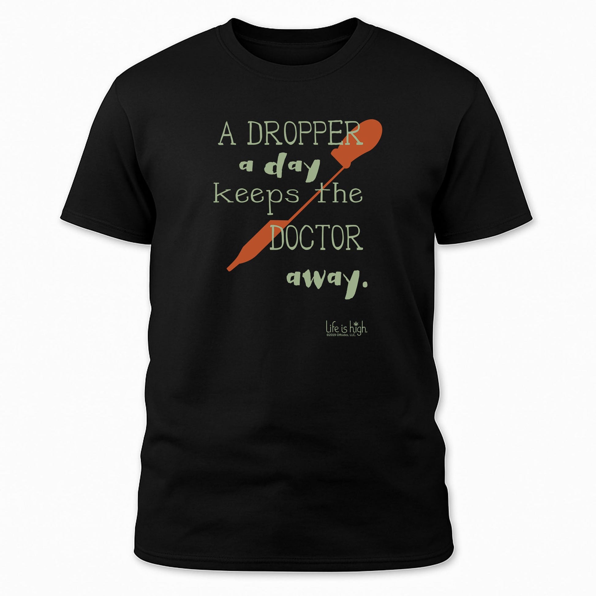 Introducing the A Dropper a Day tee from our Chemically Speaking collection — a playful twist on the classic saying, now with a wink toward modern herbal remedies. Perfect for CBD enthusiasts, wellness warriors, and anyone who knows their tinctures from their teas.