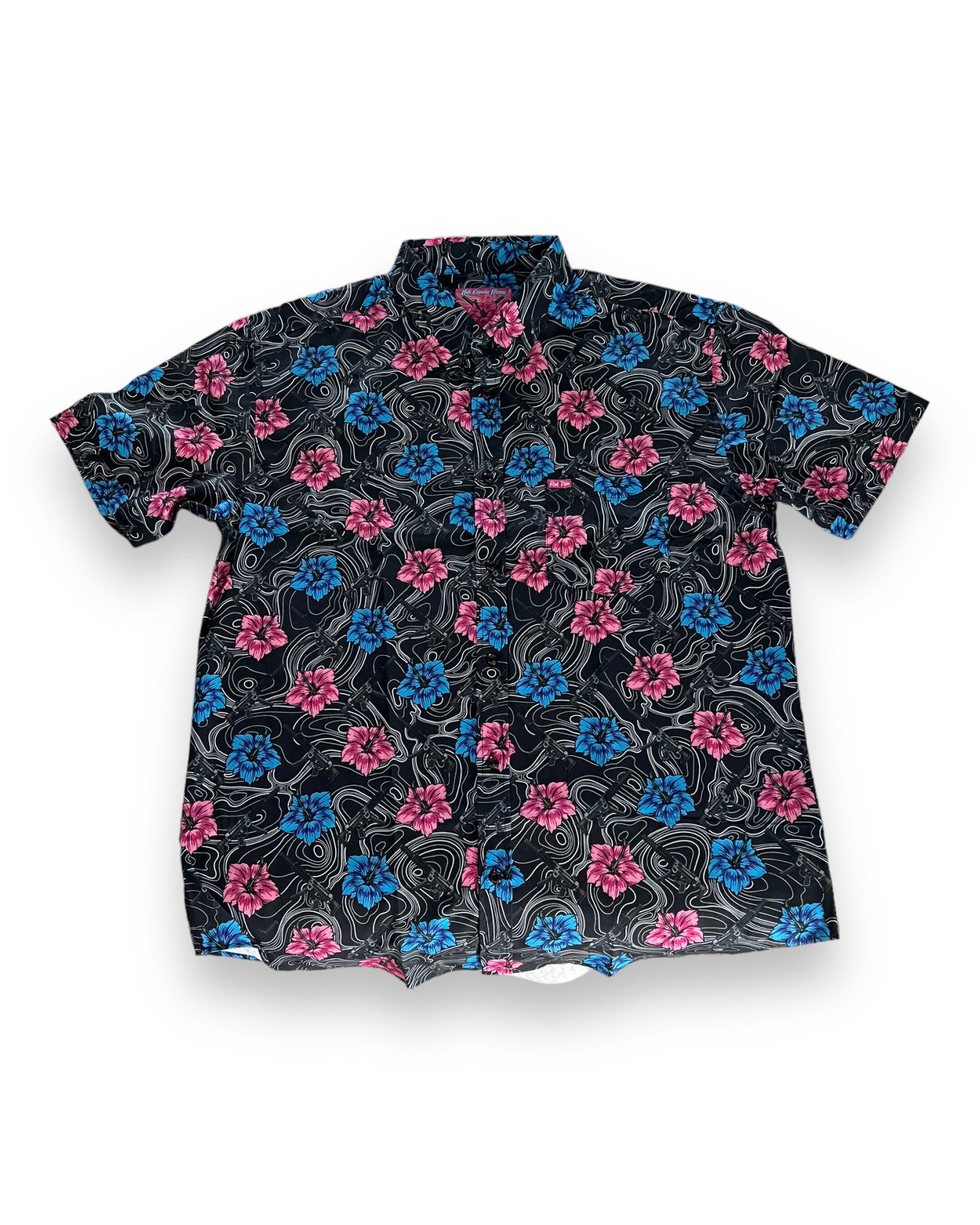 Introducing "The High Capacity Hibiscus Black" shirt, a fusion of tropical charm and modern style. Crafted with care from 93% polyester and 7% spandex, it offers a comfortable and flexible fit. The captivating hibiscus flower pattern adds elegance, while the iconic MP5 rifle motif brings a bold twist. Stand out with this unique juxtaposition wherever you go. Perfect for beach strolls, summer parties, or making a statement, "The High Capacity Hibiscus" blends comfort, style, and adventure. Embrace the extraordinary and unleash your unique style with this wardrobe essential.