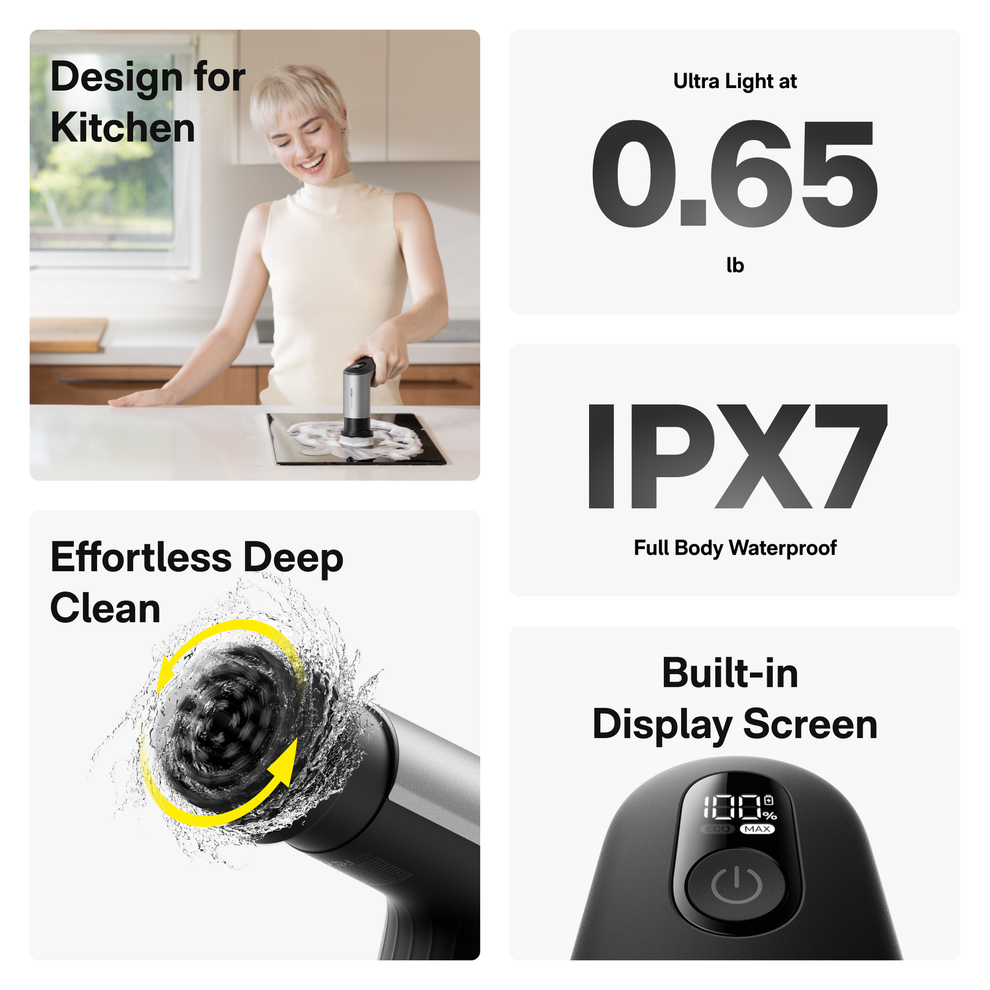 - Powerful & Fast Cleaning: With a 400 RPM motor and optimized torque design, it breaks down stubborn grease and baked-on stains faster than manual scrubbing.