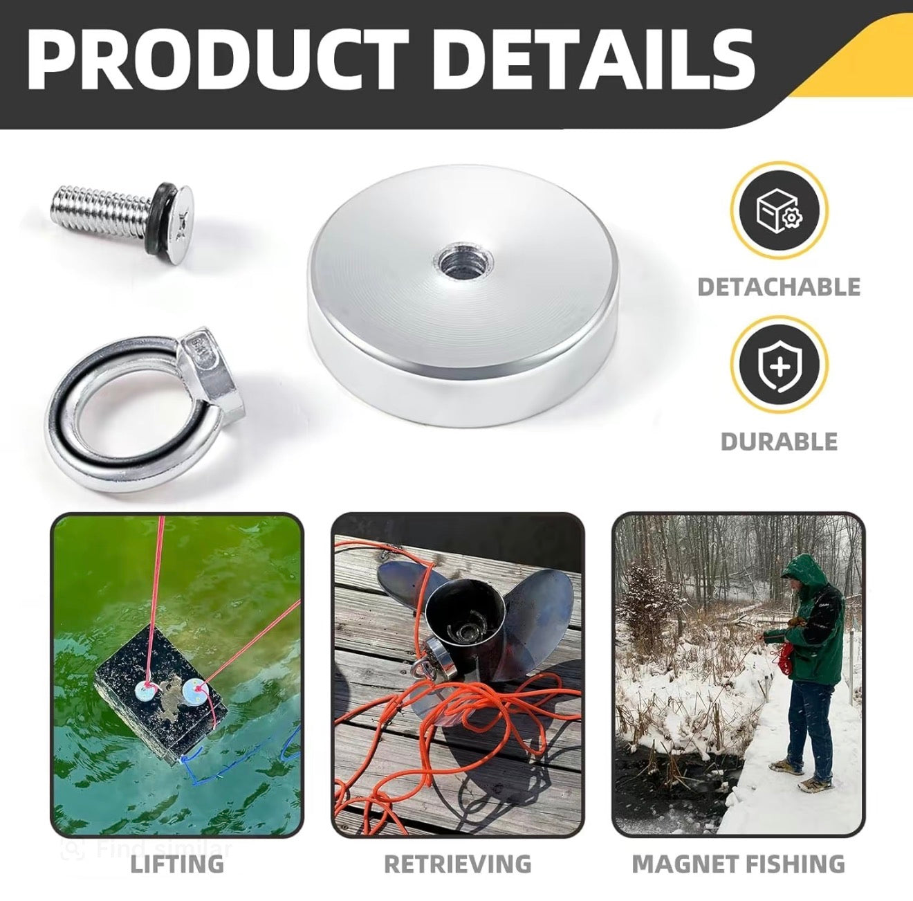 The magnet includes a pre-threaded eyebolt—just attach the included rope, tighten securely (use threadlocker for extra hold), and you’re ready to start pulling hidden treasures from below the surface. Whether you’re magnet fishing for fun or serious recovery missions, MagnaPull Recovery Magnet delivers unmatched performance.