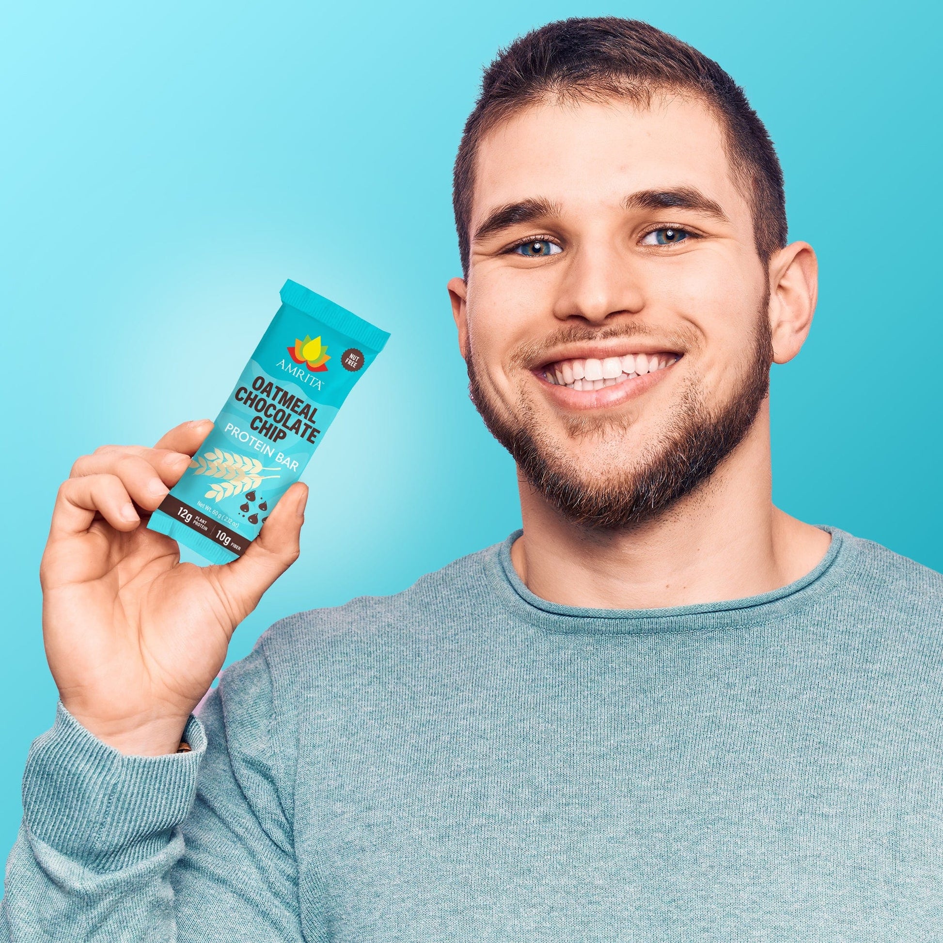 Oatmeal Chocolate Chip Protein Bar delivers a deliciously chewy texture with the warm, comforting flavor of oats and rich chocolate chips—without any of the top 9 allergens.