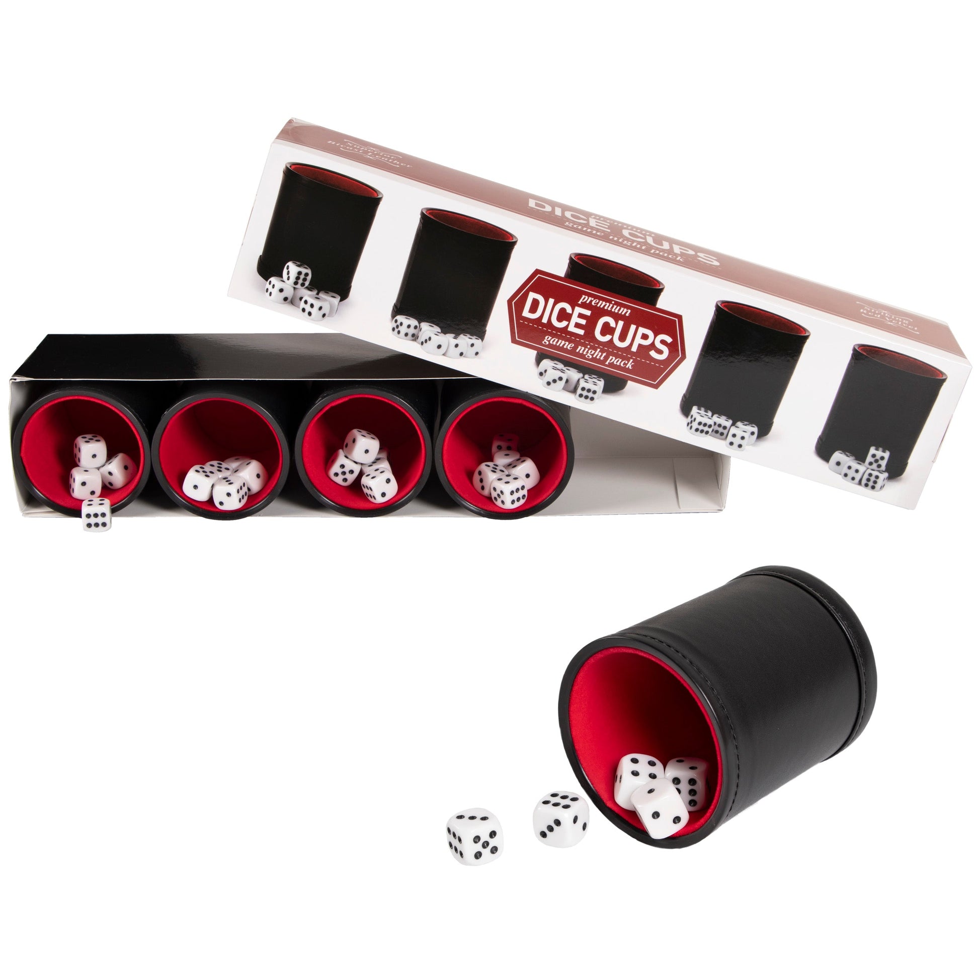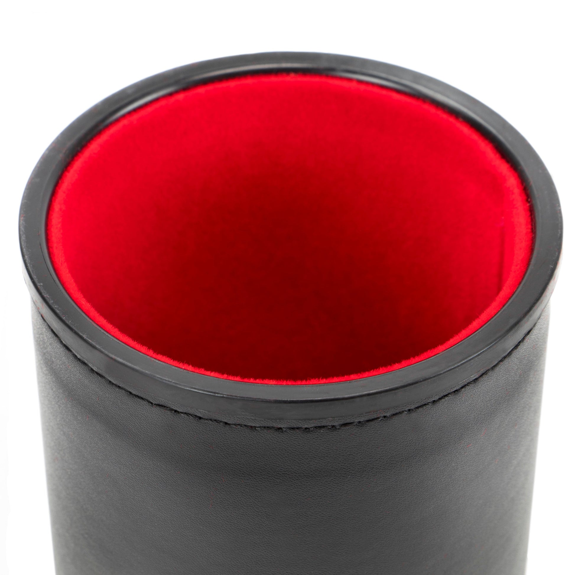 Quiet dice rolls for loud family game nights. Buttery-smooth red velvet interior, sleek black leatherette exterior. 25 white dice included in 5 sets of 5. Great for Yatzy, Farkle, Liar's Dice, and more.