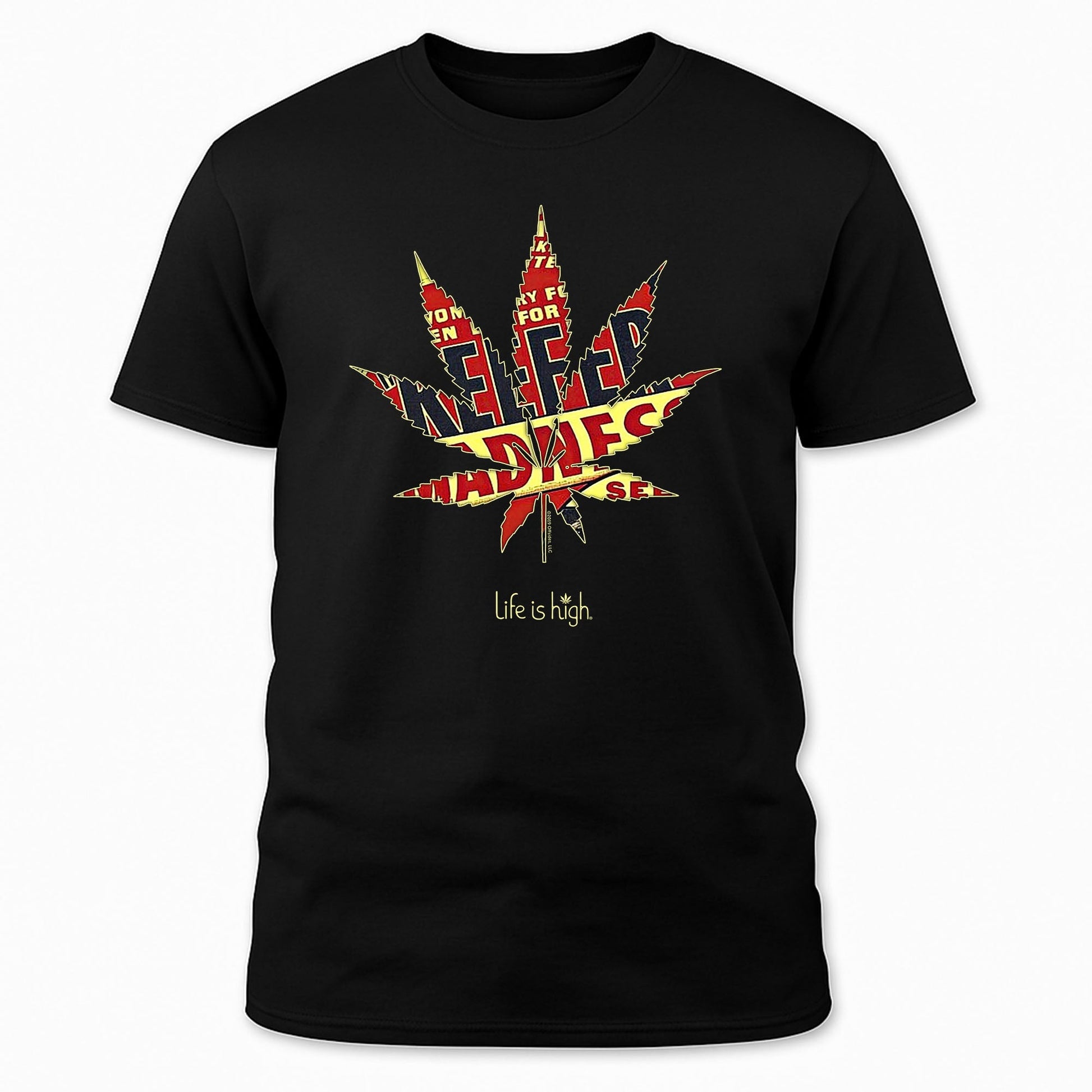 From hysteria to history lesson. Reefer Madness (Remixed) flips vintage propaganda into bold pop‑art inside a sharp leaf silhouette.