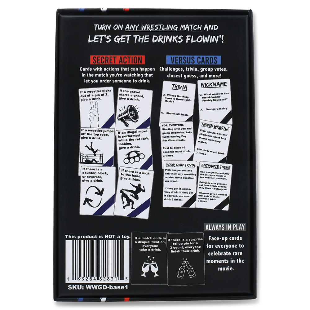 Gather your friends around the TV and put on any wrestling match, then bust out this game to deal out drinks.